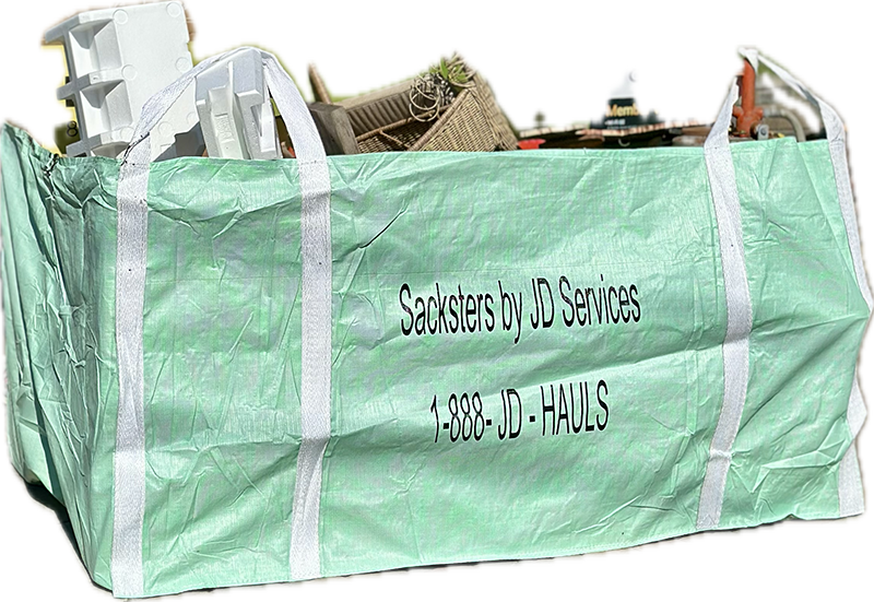 Have a smaller amount of material to dispose of? Don’t want a large metal dumpster on your property? Our Sacksters are a flexible, convenient, and affordable alternative to traditional metal dumpsters. Our large Sacksters hold up to 3000 lbs and up to 4 cubic yards of material – that’s the equivalent of almost two full-size pickup truck loads!